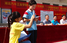 7月10日上午,湖北汽車(chē)工業(yè)學(xué)院“V益·青竹”暑期愛(ài)心支教團(tuán)的大學(xué)生們?cè)谑Y家堰鎮(zhèn)中原小學(xué)舉行愛(ài)心捐贈(zèng)活動(dòng)。湖北汽車(chē)工業(yè)學(xué)院副院長(zhǎng)閔祖?zhèn)魍尽⒖h教育局副局長(zhǎng)周躍忠同志以及相關(guān)領(lǐng)導(dǎo)都趕來(lái)支持。