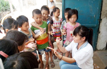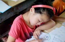 鄉(xiāng)村小學(xué),沒有體育器材,沒有娛樂設(shè)施,孩子們只能選擇自娛自樂。有次,志愿者們看到孩子們用一根細(xì)樹棍,一塊石柱,就玩起了翹翹板。每到夜晚,志愿者的住處就擠滿了學(xué)生,大家或做游戲,或一起用筆記本電腦看哆啦A夢,從孩子們看動畫片的那份專注,志愿者們看得出來,孩子們很少能看到這種動畫片。天陰教室昏暗,加上學(xué)校經(jīng)常斷電,孩子們不得不在陰暗的環(huán)境中上課。老師拿來自己的小臺燈給在角落的孩子照明,即使在這樣的情況下,孩子們依然學(xué)習(xí)很認(rèn)真。申倩老師應(yīng)該是最受歡迎的啦,她多次收到孩子們的“示愛書信”,那些小紙條上往往寫著“音樂老師你唱的歌很好聽,我喜歡你”