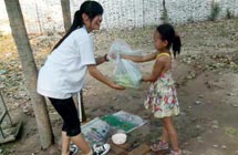 志愿者宋文靜是付里莊小學(xué)手語老師,是團(tuán)隊(duì)隊(duì)員和孩子們公認(rèn)的富有童趣的一小老師。她經(jīng)常陪孩子們做游戲,陪他們看哆啦A夢。但就是這樣一位老師,上了課堂卻像換了個(gè)人似的,非常嚴(yán)厲。志愿者王蒙苗是付里莊小學(xué)口才勵(lì)志課老師。課堂上,她認(rèn)真教學(xué),課堂下用勵(lì)志故事激勵(lì)孩子們努力學(xué)習(xí)。因?yàn)榻?jīng)常照顧生病的孩子,孩子們認(rèn)為她最有愛的一個(gè)老師。志愿者孔令陵是后勤人員之一及封丘支教教務(wù)主任。她每天都會在五點(diǎn)去最近的商店買菜,然后摘菜、洗菜,做整個(gè)團(tuán)隊(duì)和部分孩子的飯菜,保障全隊(duì)生活