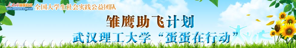 武漢理工大學(xué)“蛋蛋在行動(dòng)”成立于2011年12月,是一支致力于開展包括支教在內(nèi)的公益活動(dòng),援助山區(qū)貧困學(xué)生的公益團(tuán)隊(duì),目前擁有成員89人。2年多來(lái),舉辦的活動(dòng)有暑期支教、蛋蛋公益文化周、暖冬行動(dòng)、聯(lián)合余區(qū)六院青協(xié)為胡夢(mèng)婷募捐、愛心義賣等活動(dòng),吸引廣大師生參與,累計(jì)覆蓋人數(shù)超過(guò)一千人,募集款項(xiàng)18738.42元、物品五千余件。