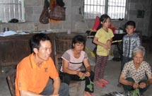 我被分到了第三組,也是這次家訪去的最遠(yuǎn)的地方。和董啟凡,楊愫愫等隊(duì)員一起需要走過(guò)崎嶇不平的山路,爬上一座一千多米的高山。有的隊(duì)員穿的是短褲,當(dāng)?shù)厣缴嫌幸环N草是有著尖利的刺,劃傷了隊(duì)員的腿,這提醒了我們出去家訪一定要穿長(zhǎng)褲。一個(gè)半小時(shí)后,他們到了第一位學(xué)生陸純的家里。陸純的家由于在建新房,全家人在簡(jiǎn)易帳篷里生活,條件十分簡(jiǎn)陋。志愿者受到了陸純家長(zhǎng)的歡迎,陸純的班主任沙士博也跟家長(zhǎng)溝通了陸純?cè)趯W(xué)校的表現(xiàn)和情況。陸純是一個(gè)比較聰明的孩子,數(shù)學(xué)成績(jī)比較好,但平時(shí)比較貪玩,上課的時(shí)候不愿意舉手發(fā)言。班主任把這些情況反映給家長(zhǎng)后,陸純的媽媽表示以后一定多多抽時(shí)間來(lái)多關(guān)心孩子的學(xué)習(xí)和生活。最后隊(duì)員董啟凡幫一家人拍了一張全家福...[詳細(xì)]>>>