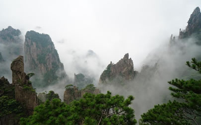 “自古黃山云成!,黃山是云霧之鄉(xiāng),以峰為體,以云為衣,其瑰麗多姿的“云!币悦馈、奇、幻享譽古今,尤其是雨雪后的初晴,日出或回落時的“霞!陛^為壯觀。怪石、奇松、峰林飄浮在云海中,可領(lǐng)略“海到盡頭天是岸,山登絕頂我為峰”的境界。