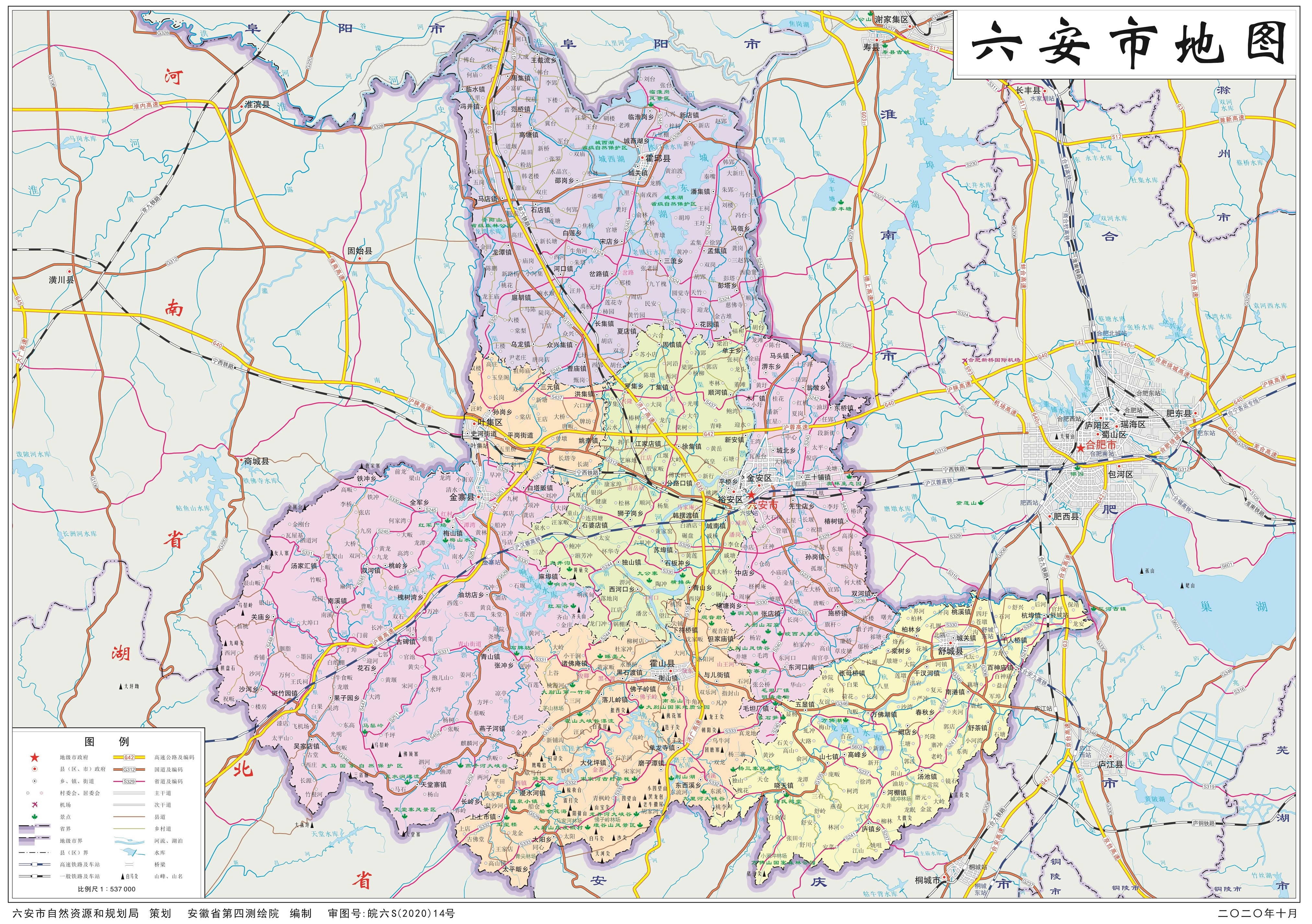 2015年12月3日,國務院批復同意將六安市壽縣劃歸淮南市管轄,至此,形成今六安市行政區(qū)域。