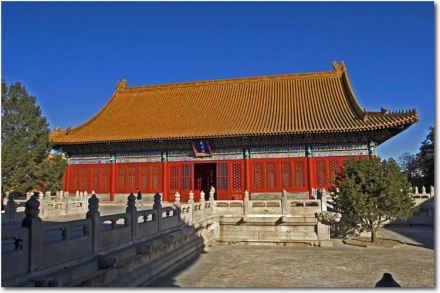 奉先殿,位于故宮內(nèi)廷東側(cè),為明清皇室祭祀祖先的家廟,始建于明初。清沿明制,于清順治十四年(1657年)重建,后又多次修繕。奉先殿建筑面積1225.00㎡。黃色琉璃瓦重檐廡殿頂,檐下彩繪金線大點(diǎn)金旋子彩畫。按清制,凡遇朔望、萬壽圣節(jié)、元旦及國家大慶等,大祭于前殿;遇列圣列后圣誕、忌辰及元宵、清明、中元、霜降、歲除等日,于后殿上香行禮;凡上徽號(hào)、冊立、冊封、御經(jīng)筵、耕耤、謁陵、巡狩、回鑾及諸慶典,均祗告于后殿。