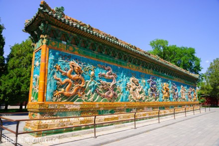 九龍壁位于故宮寧壽宮區(qū)皇極門外。壁長29.47m,高3.59m,厚0.459m,是一座背倚宮墻而建的單面琉璃影壁,為乾隆三十七年(1770年)改建寧壽宮時(shí)燒造。