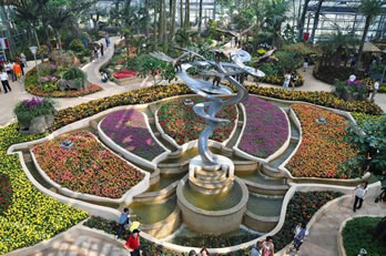 植物園溫室中共收集了來自國(guó)內(nèi)外的植物1646種。展覽溫室按照植物的原產(chǎn)地分為熱帶雨林區(qū)(105科253屬532種)、四季花卉區(qū)(46科100屬223種)、亞高山植物區(qū)(76科141屬261種)及多肉多裝區(qū)(18科70屬630種)。