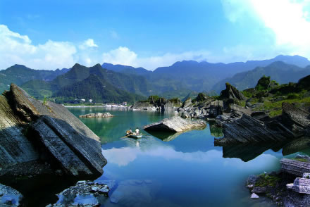 重慶黔江小南海國家地質(zhì)公園,位于重慶市黔江區(qū)小南海鎮(zhèn)南海村,重慶與湖北交界處,距黔江城北部30余千米。是一個融山、海、島、峽諸風光于一體的高山淡水湮(堰)塞湖泊,也是中國國內(nèi)迄今保存最完整的一處古地震遺址。