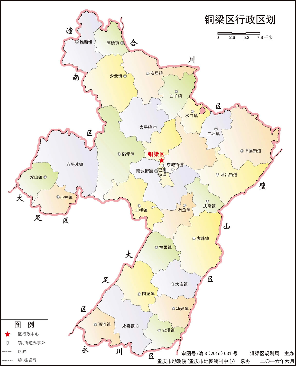 銅梁區(qū)轄5個街道、23個鎮(zhèn):