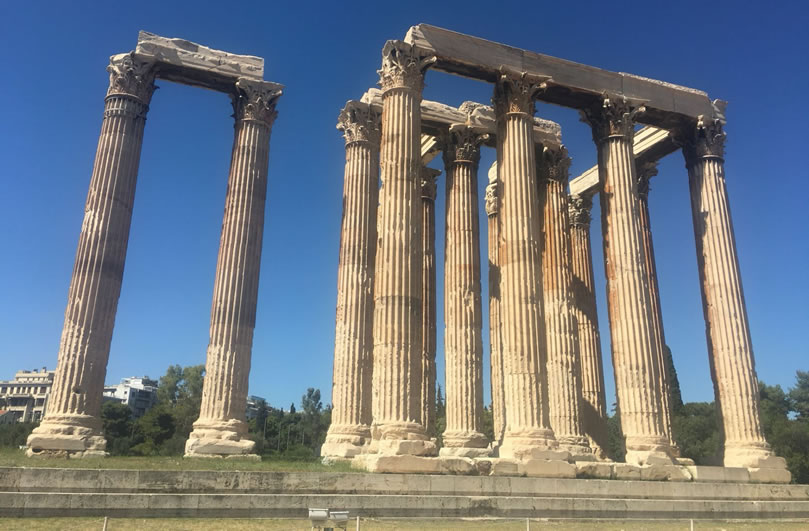 宙斯神廟 宙斯神廟位于希臘雅典衛(wèi)城東南面,是為了祭祀宙斯而建的,也是古希臘最大的神廟。宙斯神廟建于公元前470年,于公元前456年完工,由建筑師Libon設(shè)計,宙斯神像則由雕刻家菲狄亞斯負責(zé)。直到公元前86年,羅馬指揮官蘇拉(Sulla)攻占雅典,破壞了尚未完成的建筑,將一部分石柱和其他建材拆下來之后,運到羅馬。直到今天,在羅馬市中心的古羅馬廣場遺址上,還能看見它們。宙斯廟尤以象牙和黃金的塑像而聞名于世。 宙斯神廟是伊奧尼亞風(fēng)格的建筑,后來改用了科林斯式石柱風(fēng)格,而且一概使用大理石。整個建筑坐落在一塊205米長,130米寬的地基上,神廟本身長107.75米,寬41米,共有104根科林斯柱。每根石柱高達17.25米,頂端直徑達1.3米,約計用大理石1.55萬噸。和眾多的古希臘神廟一樣,宙斯神廟也遭受嚴重的破壞,104根柱子中僅存13根。宙斯神廟和哈德良拱門隔路相望,宙斯神廟位于路南,而哈德良拱門則位于路北,這兩座建筑都是由距今1900多年前的羅馬帝國國王哈德良時期修建的。我們已經(jīng)無法看到宙斯神廟和哈德良拱門的原始形態(tài),只能通過斷壁殘垣來回憶當(dāng)時的輝煌。