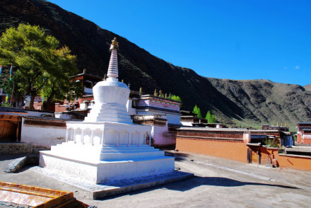 拉卜楞寺尚有藏經(jīng)樓、印經(jīng)院、夏丹拉康、菩提法苑、嘉木樣別墅、銅塔、廚房和牌坊等建筑。藏經(jīng)樓在薩木察倉昂欠的西面,內(nèi)藏6萬多冊(cè)經(jīng)卷,不幸“文革”中遭到破壞,損失很大,經(jīng)卷移到時(shí)輪學(xué)院,新藏經(jīng)樓已重新建成。印經(jīng)院在千手千眼觀音殿的前面,原屬蒙古河南親王府,藏有大量的經(jīng)版,在“文革”中受到破壞,文革后得到了恢復(fù)和擴(kuò)充,增添了鑄字銅模、鑄字機(jī)、平臺(tái)印刷機(jī)等鉛印設(shè)備。夏丹拉康,在大經(jīng)堂東北隅,是班禪大師行宮。菩提法苑,即為僧人辯經(jīng)場(chǎng)所,位于寺院西邊薩哈爾村南。經(jīng)輪房,俗稱“嘛呢房”,是建造簡(jiǎn)單之平房,圍繞寺周,約500余間,內(nèi)設(shè)經(jīng)輪。菩提塔,為銅質(zhì)鎦金,高三層,甚為珍貴,因位于貢唐倉院內(nèi),又稱貢唐塔,另大經(jīng)堂東側(cè)有合離塔,寺院東邊有“神變白塔”。原于寺院東邊,有牌坊1座,上懸“輸財(cái)衛(wèi)國”匾額1面,現(xiàn)不存。