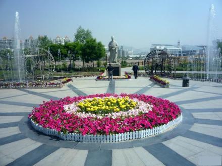 在水車廣場西端有一組水池,它由三級七階大小不等的水池組成,形成一組美麗、壯觀的瀑布群,與蘭州水車遙相呼應(yīng),展現(xiàn)出一個美麗如畫的景觀。