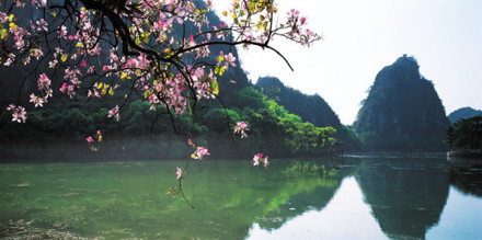 春光三月,一棵棵宮粉紫荊含苞怒放,花兒掛滿枝頭,適逢蒙蒙細(xì)雨,風(fēng)景更是迷人,只見山映著水,水繞著山,煙霧飄渺。
