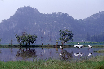 “丹頂鶴生態(tài)園”有丹頂鶴50多只,它們身姿高雅而端莊,兩翅不時(shí)輕舒慢舞,引著修長(zhǎng)婀娜的脖子,偶而亭亭玉立,偶而輕盈踱步。它們時(shí)而高歌,時(shí)而飛翔,像是歡迎遠(yuǎn)道而來(lái)的客人。仙女湖中幾個(gè)自然的候鳥群島,它們由四個(gè)小島組成,分別名曰:藏珠、瑤玉、云起和小瀛洲。這四個(gè)小島和一旁的招鳥島以及小島周圍半徑150米水域范圍被列為生態(tài)絕對(duì)保護(hù)區(qū)。