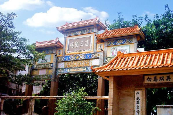 平南縣城東七十里的白馬圩風景區(qū)。該處有明督師袁崇煥故里和南漢梁嵩狀元廟遺址。梁嵩為五代南漢時人,經(jīng)苦學考取狀元及第,仕至翰林學士,因不滿虐政,辭官歸里,過白馬東濠河溺歿,州人感其請蠲免龔州丁賦之德,立廟以祀。袁崇煥詔授兵部尚書兼三邊總制時,曾在家鄉(xiāng)平南白馬建有“總制三邊坊”。1986年,在白馬圩重建改建了“袁崇煥總制三邊坊”和“梁嵩紀念館”,與巍巍辰嶺,悠悠碧水,互相輝映,殊為壯觀