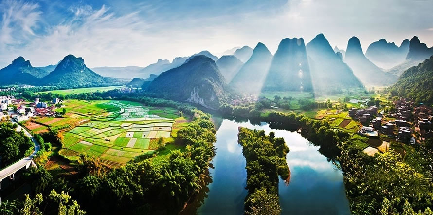 古龍河景區(qū),位于廣西宜州祥貝鄉(xiāng)古龍村,這里是廣西最后的山水凈土,有“世外仙境”的美譽,是國家AAA級景區(qū)、中國最美意境旅游景區(qū)。古龍河山清水秀,竹翠峰美,游客乘坐竹筏順水而下,可以觀賞到中國最大的壯族水車,體驗到魚鷹捕魚、江中漁韻的詩情畫意,欣賞到壯族古老的圖騰巖畫,感受到最有民俗特色的壯族情歌。在當?shù)亓鱾髦?ldquo;桂林山水甲天下,古龍山水賽桂林”的說法。