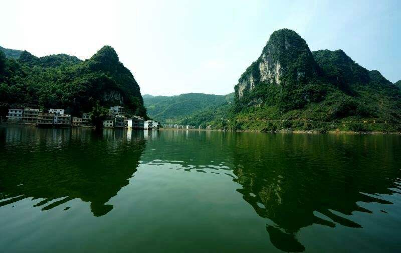 石馬湖,是鳳山縣最大的高山天然湖泊,湖面海拔640米,冬季湖面為100公頃。夏季湖面為150公頃。石馬湖是由一條地表河流直入下牙溶洞,因地表沖積物堵塞落水處,水位提高而形成,這是喀斯特地貌中規(guī)模較大的天然湖泊。湖岸壯族古式木樓風格別俱。