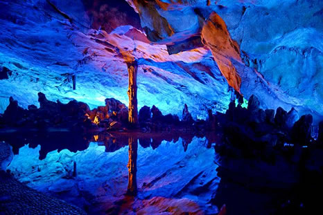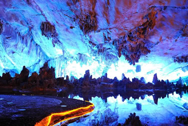 蘆笛巖是整個漓江風(fēng)景名勝區(qū)的重要組成部分,1959年籌建,1962年開放,1982年11月成為國務(wù)院頒布的第一批國家重點風(fēng)景名勝區(qū)。它擁有大自然賦予桂林山水清奇俊秀的巖溶風(fēng)貌。蘆笛巖洞深240米,游程500米。約70萬年前,因地下水沖刷和溶蝕,含碳酸鈣的滴水、流水與積水,因水分揮發(fā),二氧化碳重新沉淀,形成了千姿百態(tài)的鐘乳石奇觀。自洞頂垂下的叫石乳,自地上向上生長的叫石筍,石乳與石筍連接成石柱、石幔、石枝、石花、石瀑等;一些石頭中空,敲擊時發(fā)出的聲音清越入耳,又稱石琴、石鼓、石鐘;回乳石中含方解石微粒,在洞內(nèi)五彩燈光的映照耀反光,便形成"鉆石山"、"高峽飛瀑"等奇觀。