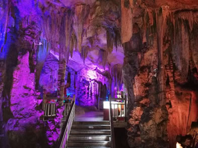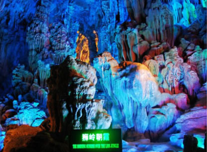 巖洞內(nèi)共分"石幔層林"、"天柱云山"、"水晶宮"以及"曲徑畫廊"四個洞天,有"獅嶺朝霞"、"高峽飛瀑"、"原始森林"、遠望山城"、"盤龍寶塔"等20處景點,被譽為"大自然的藝術(shù)之宮"。