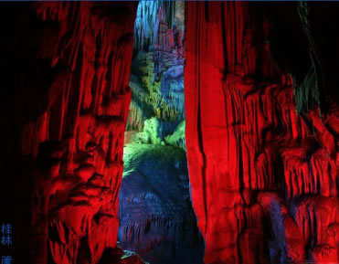 “桂林山水甲天下,蘆笛美景堪最佳!碧J笛巖是桂林山水一顆璀璨的明珠,蘆笛巖位于光明山南側(cè)山腰,洞深240米,游程近500米,是一處景致高度集中、景物極盡造化的神奇游覽佳境。在這個奇妙的巖洞中,琳瑯滿目的鐘乳石、石筍、石柱、石幔、石花擬人狀物,惟妙惟肖,構(gòu)成了三十多處景觀,有“紅羅寶帳”、“高峽飛瀑”、“盤龍寶塔”、“原始森林”、“簾外云山”、“水晶宮”等,可謂移步成景,步移景換。整個巖洞猶如一座用寶石、珊瑚、翡翠雕砌而成的宏偉、壯麗的地下宮殿。