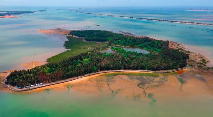 平山島,坐落在欽州城的南面,四面環(huán)水,與市區(qū)一水相隔土地平坦,林豐草茂,臨海的一面又突兀一座山峰,風(fēng)光旖旎,景色秀麗。康熙嶺標(biāo)準(zhǔn)海堤,全長(zhǎng)三十多千米, 號(hào)稱廣西第一堤,俗稱“海上長(zhǎng)城”。