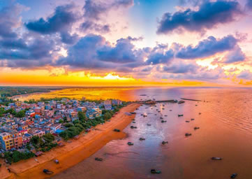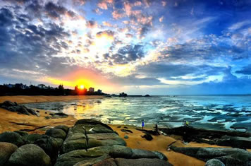 傍晚在松軟潔凈的沙灘上拾貝捉蝦,收獲一份意外的驚喜,享受自己辛勤勞動的成果,不必擔心夕陽西下,在暮色蒼茫的漁村下榻,潔凈簡樸的漁家旅店是濱海月色星光下最溫馨的家。