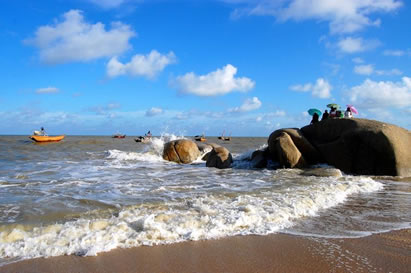 最富特色的是這里的海豚和奇石。海域內,常年活躍著數百頭五彩斑斕的中華白海豚,而且一年四季都能近距離觀看,每當漁民出海捕魚或游人出海觀光時,海豚常常追逐漁船、親漁夫、逗游客,或在海中嬉戲,構成了一幅人、豚親密無間、和諧相處的美好畫面。這里的另一個特色是遍布各處的奇石,沙灘旁、淺海中奇石林立。
