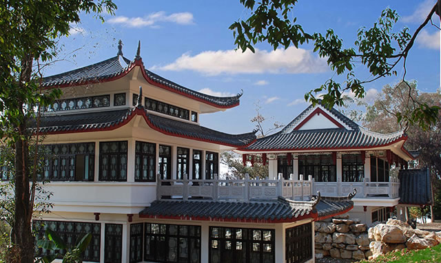 梁羽生公園坐落在蒙山縣城區(qū)東南角的鰲山上,始建于2005年10月,占地60多畝。園名為武俠小說(shuō)作家金庸題書(shū),大門(mén)兩邊有鄺健行教授撰、馬國(guó)權(quán)先生書(shū)寫(xiě)的對(duì)聯(lián):“舉世陳言始著新文開(kāi)俠統(tǒng);一園生意爭(zhēng)鳴翠羽繞雕梁”。山上原建有一座五層寶塔,蒙山人習(xí)慣稱(chēng)作文筆。