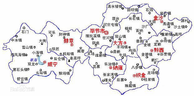 金沙縣 面積2528平方千米,人口53.74萬(wàn),政府駐鼓場(chǎng)街道,下轄5個(gè)街道、14個(gè)鎮(zhèn)、7個(gè)鄉(xiāng)
