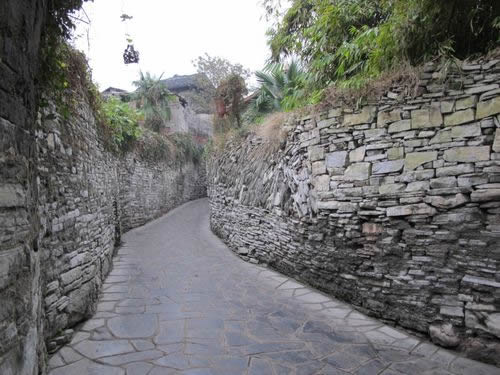 院落:青巖古鎮(zhèn)大戶人家的院落并不十分闊綽,一般是三合院,有小朝門、石院壩、花壇、石凳、小軒窗,簡樸、寧靜而有書香氣。小巷住著尋常百姓人家,巷子兩邊的墻多用毛石堆砌或用土筑,墻上布滿綠草、青苔,偶爾伸出幾枝花果,恬淡而有山野味,顯得年代相當久遠。