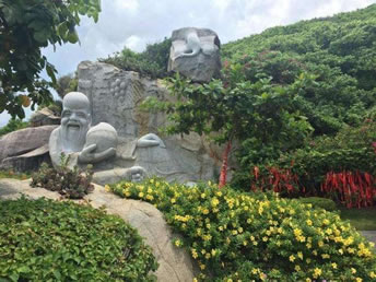 南山是座吉祥的山,在老百姓的心目中南山與長壽密切相關(guān),是真正意義上的壽山。中國稱作南山的地方很多,如廣東的潮州、福建的莆田、四川的大足、陜西的西安等地都有南山。最著名的南山當(dāng)數(shù)青海東都境內(nèi)的南山,見于《中國名山大川辭典》(1992年,山東教育出版社)。但大小洞天所在的南山卻非常獨(dú)特;其一,這是中國最南部的山,是名副其實(shí),名正言順的南山;其二,南山大小洞天被視為南海的”洞天福地”!倍刺旄5亍笔堑兰译[居和修煉長生不老的地方,也是神仙真人之治所,是理想中長壽之地;其三,中國第三次、第四次人中普查結(jié)果顯示:海南的人口平均壽命最高,而三亞市的人口平均壽命為海南之首,南山又為三亞之最,現(xiàn)存86歲以上的老人達(dá)幾百人之多,可見這里是實(shí)實(shí)在在的福澤之地,長壽之鄉(xiāng);其四,南山大小洞天一帶集中分布有能成活數(shù)千年的長壽樹--被美喻為”南山不老松”的龍血樹。龍血樹屬龍舌蘭科常綠植物。白堊紀(jì)恐龍時(shí)代就已出現(xiàn),被稱為植物中的活化石,世界科教文組織列為保護(hù)樹種。中國亦定其為珍稀瀕危植物,屬國家二級(jí)重點(diǎn)保護(hù)樹種,主要分布于熱帶、亞熱帶軒區(qū),F(xiàn)今,此樹種已瀕臨滅跡,但在三亞南山一帶卻生長著三萬株之多,主要集中于南山大小洞天旅游區(qū),樹齡逾千年的有兩千多株,最長的有六千年以上。福澤之地,養(yǎng)育千年古樹;神足之山,氤氖萬古精靈。人們有足夠的理由相信,南山是長壽之鄉(xiāng),”壽比南山”在這里當(dāng)之無愧。”壽比南山不老松”正是這一景區(qū)的真實(shí)寫照。