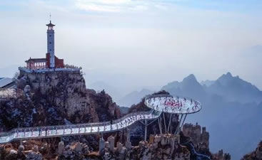 仙人橋下一深谷,名迷魂谷。谷內(nèi)奇石林立,頂部有數(shù)千只小銅鈴錯(cuò)落垂下,風(fēng)吹鈴聲悅耳。距仙人橋不遠(yuǎn)有一小徑,只容一人擦身而過(guò),兩側(cè)峭壁兀立對(duì)峙,只見(jiàn)一縷青天,不見(jiàn)陽(yáng)光,此徑名一線天。