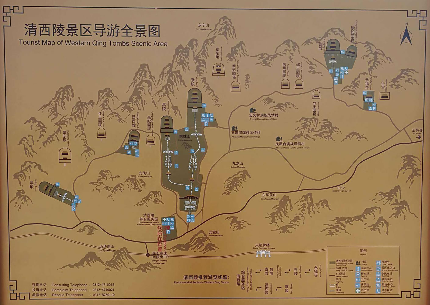 清西陵陵區(qū)內(nèi)各陵園共用祖山、石牌坊、大紅門,周圍均用風(fēng)水圍墻和火道、界樁圍繞。陵寢布局有主有從,皇后陵和妃園寢均以本朝帝陵為中心,分建左右,自成一區(qū),體現(xiàn)了附屬關(guān)系,表明陪葬之意。各帝陵神道均與主陵神道相接,后陵神道與本朝帝陵神道相接,形成枝狀的神道網(wǎng)絡(luò)。這些特點是清代以前的歷代皇陵所不具備的。整個清西陵陵區(qū)以清世宗雍正帝的泰陵為中心,西面分布著清仁宗昌陵和清宣宗慕陵,東面分布著清德宗崇陵、溥儀墓以及阿哥、公主園寢和永福寺等建筑。