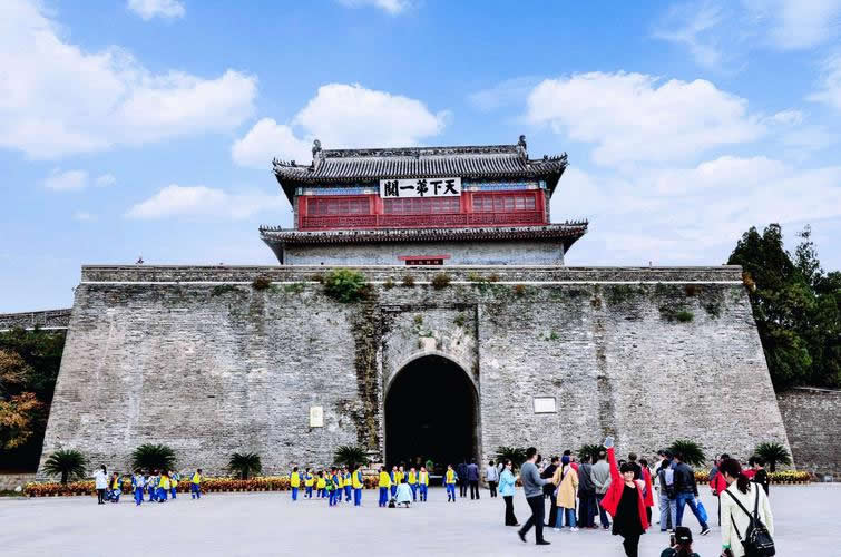 明洪武十四年(1381年),明太祖朱元璋下令在此筑城建關,遂成為扼東北、華北咽喉要塞的軍事重鎮(zhèn),因其依山襟海,故得名山海關。山海關有“天下第一關”的美譽,牌匾為明代著名書法家蕭顯所書。山海關城周長約4千米,與長城相連,以城為關,城高14米,厚7米,有四座主要城門,多種防御建筑。包括“天下第一關”箭樓、靖邊樓、牧營樓、臨閭樓、甕城以及1350延長米的明代平原長城等景觀。