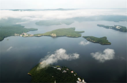 百里長湖是鏡泊湖風(fēng)景區(qū)三大核心景區(qū)之一,蜿蜒曲折呈“S”型分為北湖、中湖、南湖、上湖四部分,縱長45公里約100華里,因此稱為百里長湖。鏡泊湖水域面積為79平方公里,豐水期時水域面積90.3平方公里,總蓄水量為16.2億立方米,是世界最大的火山熔巖堰塞湖。是一萬年前后歷經(jīng)五次火山爆發(fā),熔巖阻塞了牡丹江古河道,構(gòu)成了天然的熔巖堤壩,形成了早期的鏡泊湖。在距今約7萬年的晚更新世末,又有較大規(guī)模的火山噴發(fā)。鑄就了更加寬闊的熔巖堤壩,從而逐漸形成了世界第一大火山熔巖堰塞湖,是景區(qū)的特級自然景源(世界級)。湖中有白石砬子,大孤山,小孤山,湖州城,珍珠門,道士山,老鴰砬子等多處水上一級(國家級)自然景源。