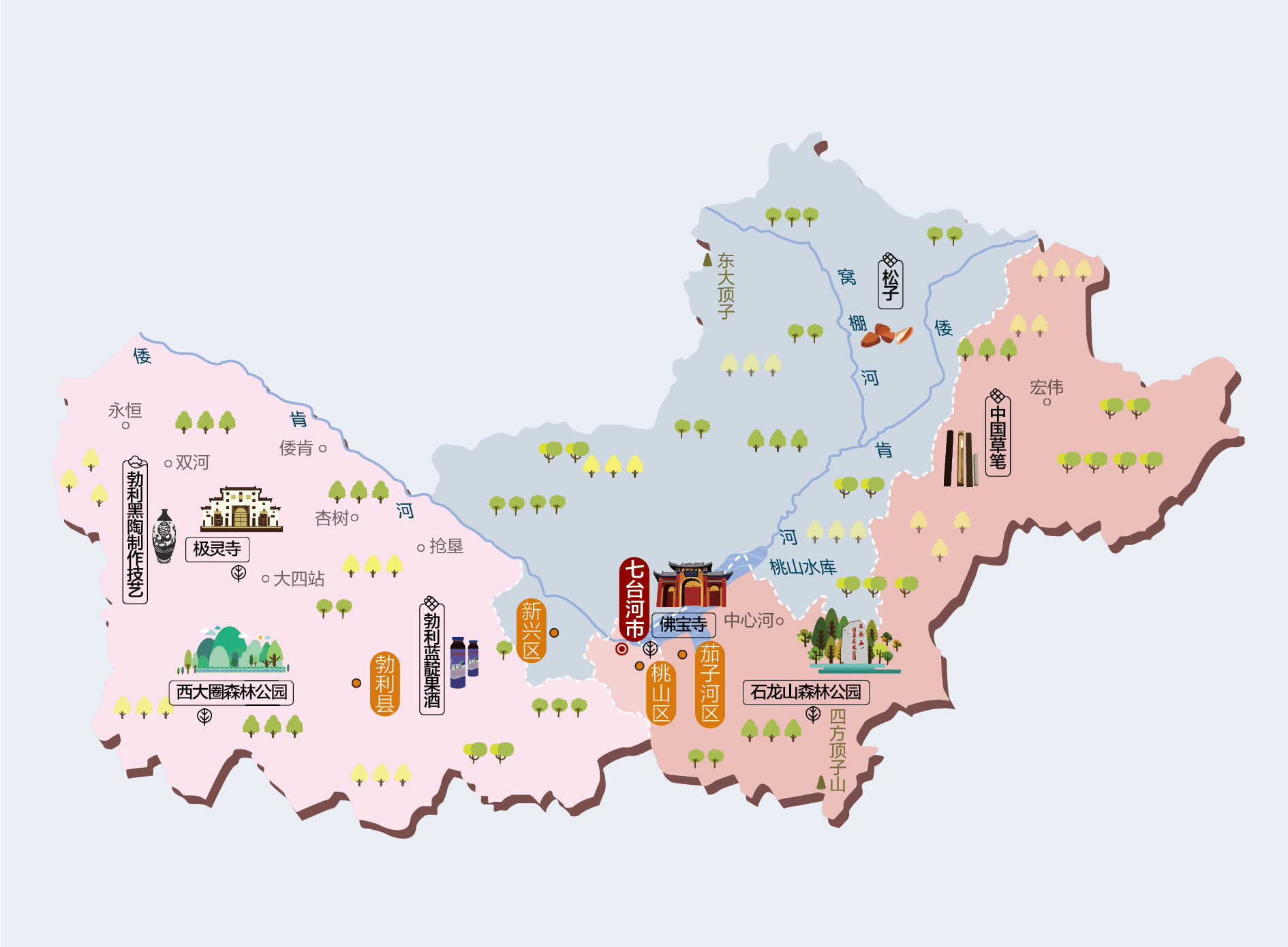 七臺(tái)河市轄3個(gè)市轄區(qū)、1個(gè)縣: