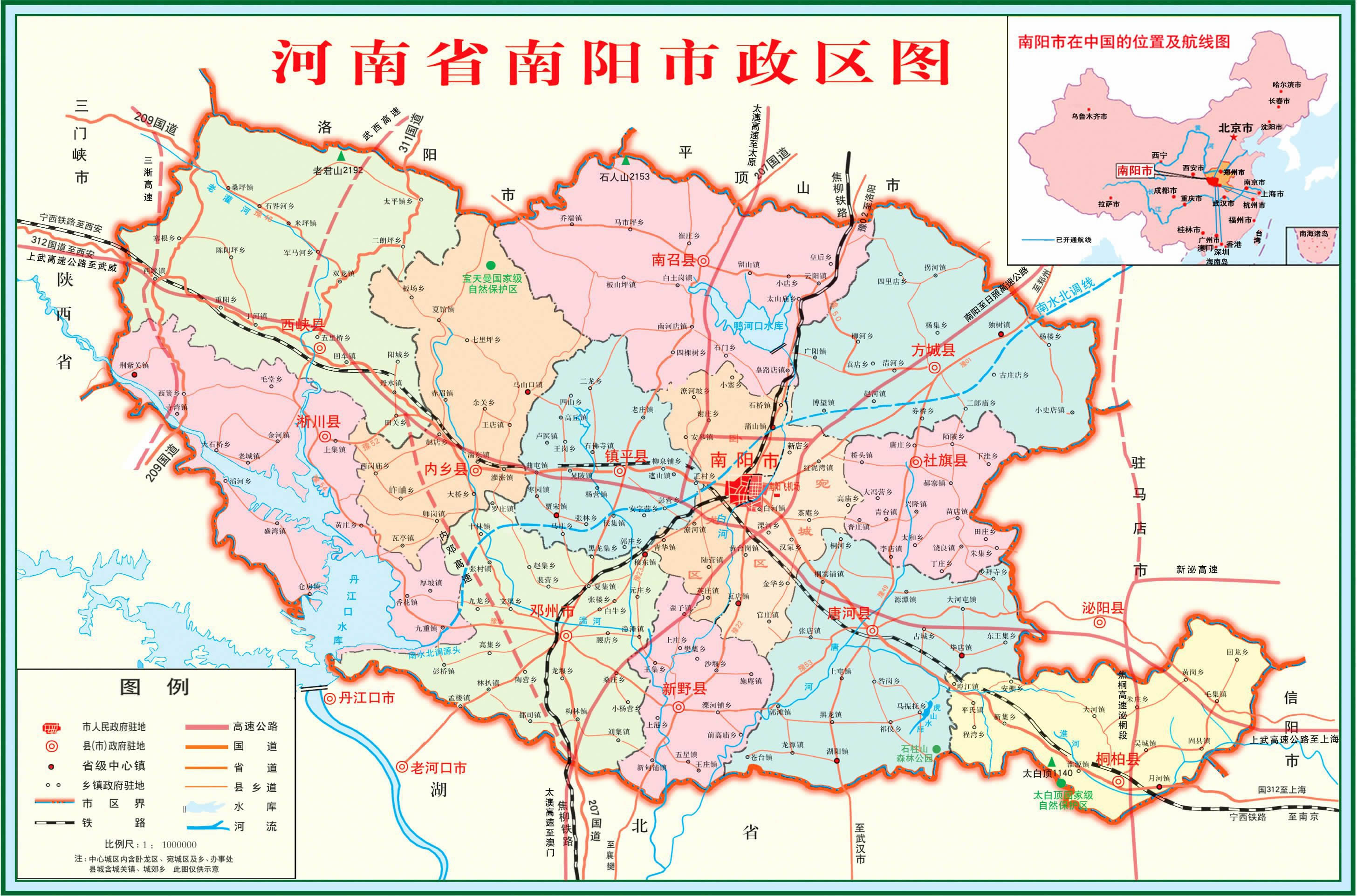 南陽市轄2個市轄區(qū)、10個縣,代管1個縣級市: