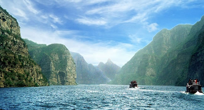 黃河三峽是小浪底與王屋山所孕育的精華,位于小浪底水庫大壩上游20公里處,總面積40平方公里, 是小浪底風(fēng)景區(qū)的精華所在。八里胡同位于黃河中下游最窄處,兩岸斷壁如削,中間河水奔涌,三條峽谷各具風(fēng)采:孤山峽鬼斧神工,千仞壁立;龍鳳峽盤龍走蛇,曲折迂回;大峪峽開闊舒展,氣象萬千。特別是九蹬蓮花棧,九蹬九級,次第升高,望之若蓮花盛開,似出水芙蓉,號稱“鯀山禹斧”。是我國北方少有的山水景觀,可以和長江三峽媲美。 黃河小浪底風(fēng)景區(qū)是河南省以黃河中下游水利樞紐工程、峽谷河流為主要特色,體現(xiàn)黃河歷史文化和自然風(fēng)光的大型山岳湖泊型風(fēng)景區(qū),是開展觀光、休閑、度假旅游的最佳場所。