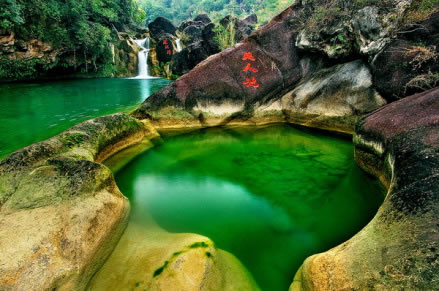 美人谷由一系列的深潭、瀑布、奇石、幽洞組成,是一個以山水為主的峽谷型生態(tài)休閑游覽區(qū),特別是由數(shù)十個氣勢磅礴的瀑布組成的瀑布群,成為華中地區(qū)的奇觀。
