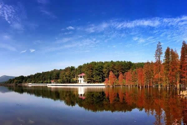 10:10知音谷林蔭小道,光影斑駁,曲徑通幽,桃李爭艷、迎春花黃,爛漫花事,溪流潺潺。瀏撫琴石,子期草廬,試斧石,山人居,聆聽“高山流水遇知音”的唯美故事,感受千年前俞伯牙與鐘子期的真摯友情。登扶云梯,攀江漢平原第一高峰——龍霓山,鎖情臺開天下第一同心鎖。楚望亭遠眺山鄉(xiāng)田園風光。森林穿越,過九真關;行琴人谷,詩竹軒看春筍破土,翠竹拔節(jié),氧浴竹海。賞當?shù)孛視嫛_^九曲橋,徜徉山水之間。鴛鴦壩下高爾夫球場瀟灑揮桿(自費),體驗貴族運動的高雅情趣。賞連理湖美景,青山秀水,滿山含翠。檫木花開,嫩黃朵朵,猶如繁星點綴在山野之間。
