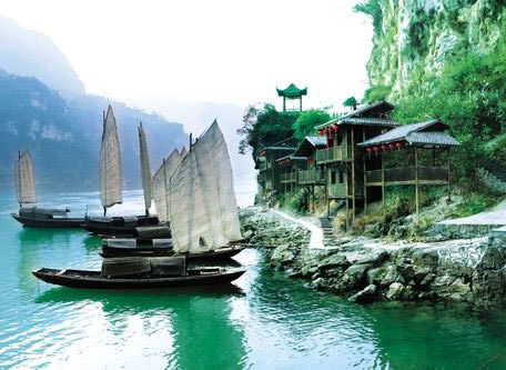 三峽人家,依山傍水,風(fēng)情如畫:傳統(tǒng)的三峽吊腳樓點(diǎn)綴于山水之間,久違的古帆船、烏篷船安靜地泊在三峽人家門前,溪邊少女揮著棒槌在清洗衣服,江面上悠然的漁家在撒網(wǎng)打魚……千百年來(lái)流傳不衰的各種習(xí)俗風(fēng)情體現(xiàn)著峽江人民的質(zhì)樸好客。