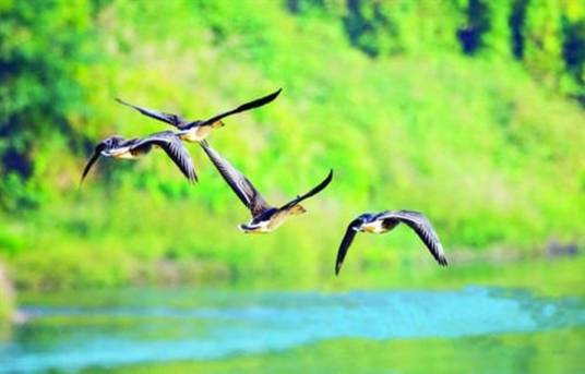 江口鳥洲的核心區(qū)域面積35公頃,總面積70平方公里,由陳家洲、張家洲、龍家洲三個島組成,形成了良好的生態(tài)環(huán)境。洲上古樹修竹成蔭,氣候溫暖涼爽,附近水庫、池塘星羅棋布,稻田、森林延綿成片,鳥類食物豐富,是鳥類活動的理想王國。
