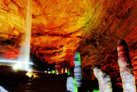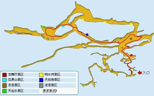 黃龍洞以立體的洞穴結(jié)構(gòu),龐大的洞穴空間,寬闊的廳堂及數(shù)以萬計(jì)的石筍,高大的洞穴瀑布,水陸兼?zhèn)涞挠斡[線等優(yōu)勢構(gòu)成了極具特色的游覽洞穴,洞內(nèi)有1庫、2河、3潭、4瀑、13大廳、98廊,以及幾十座山峰,上千個(gè)白玉池和近萬根石筍。由石灰質(zhì)溶液凝結(jié)而成的石鐘乳、石筍、石柱、石花、石幔、石枝、石管、石珍珠、石珊瑚等遍布其中,無所不奇,無奇不有,仿佛一座神奇的地下“魔宮”。黃龍洞現(xiàn)已開放有龍舞廳、響水河、天柱街、天仙瀑、龍宮等6大游覽區(qū),主要景觀有定海神針、萬年雪松、龍王寶座、火箭升空、花果山、天仙瀑布、海螺吹天、雙門迎賓、滄海桑田、黃土高坡等100多個(gè)。