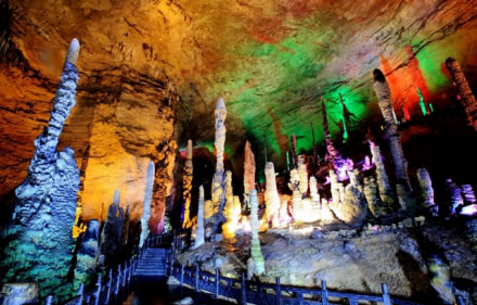黃龍洞位于湖南省張家界市核心景區(qū)武陵源風(fēng)景名勝區(qū)內(nèi),是世界自然遺產(chǎn)、世界地質(zhì)公園武陵源的有機(jī)組成部分,屬典型的喀斯特巖溶地貌,以其龐大的立體結(jié)構(gòu)洞穴空間、豐富的溶洞景觀、水陸兼?zhèn)涞挠斡[觀光線路獨(dú)步天下,被列為國際旅游洞穴會(huì)員、全國35個(gè)王牌景點(diǎn)之一、中國首批AAAA級旅游景區(qū)、中國旅游首批知名品牌、中國馳名商標(biāo)、湖南省最佳旅游景區(qū)、張家界旅游精品線之一,享有“世界溶洞奇觀”、“世界溶洞全能冠軍”之美譽(yù),2005年被評選為“中國最美旅游溶洞”。