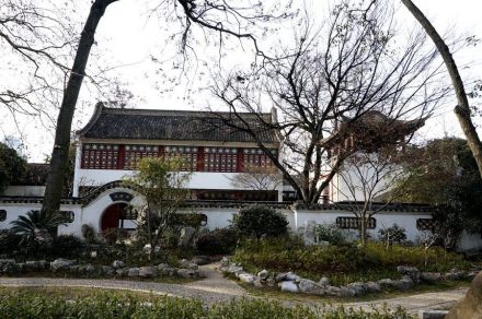 風(fēng)荷苑西岸背倚假山,有亭臺樓榭濱水而建,屋為木結(jié)構(gòu),有六朝建筑遺風(fēng)。坐在樓臺上面向東北,可以看到櫻橋臥于水面,水中倒影飄逸。東南湖面上更是滿目荷花,別有一番“荷香帶風(fēng)遠(yuǎn),蓮影向根生”的意境。