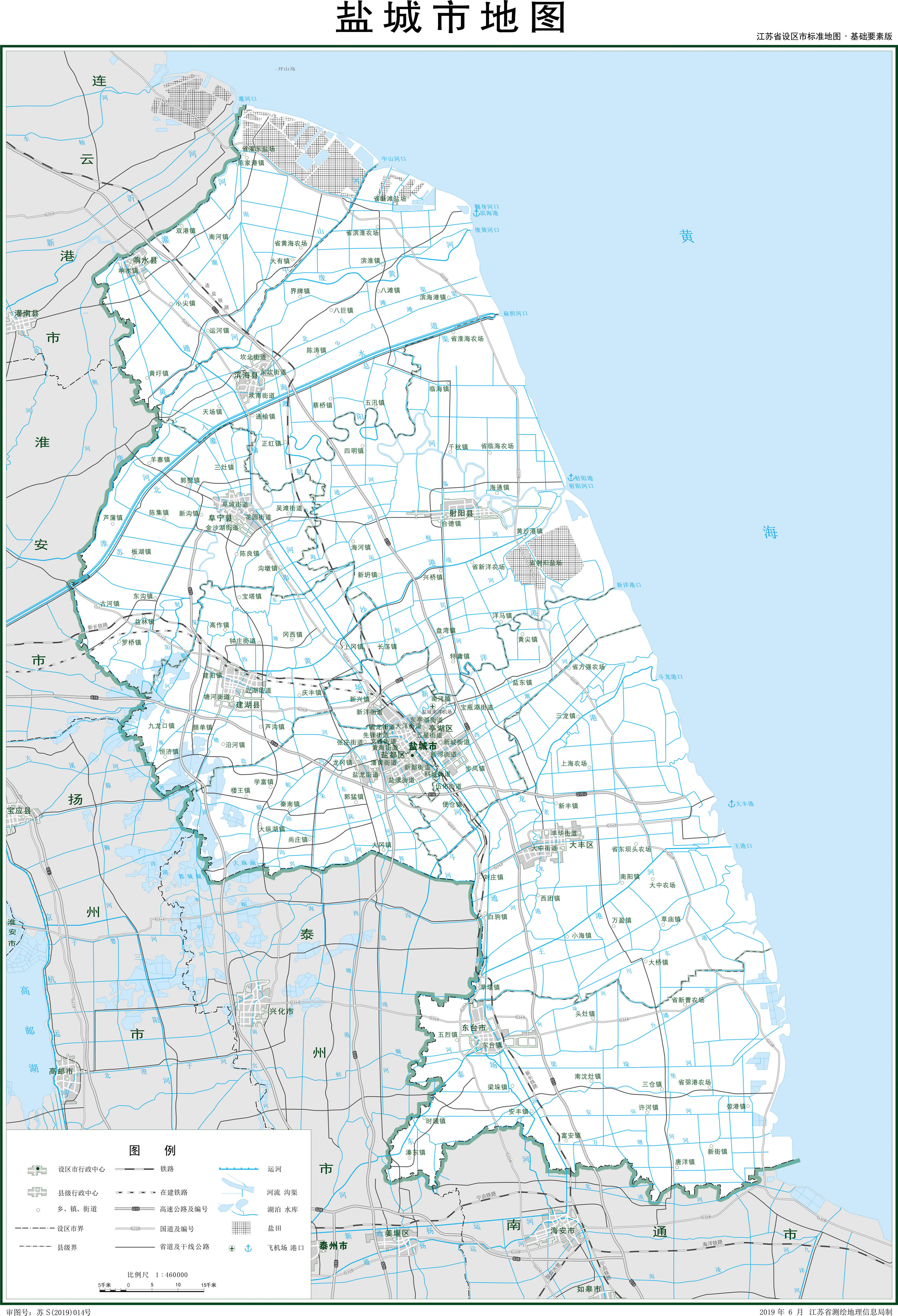 鹽城市轄3個(gè)區(qū)、5個(gè)縣,代管1個(gè)縣級(jí)市: