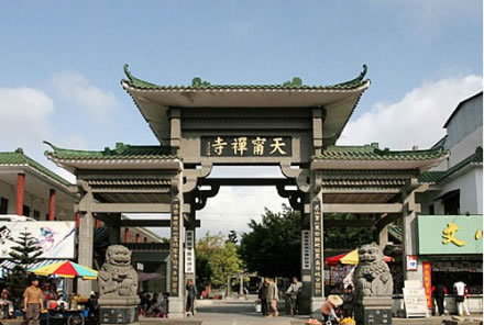 天寧古寺有過極盛的年華,隨著滄桑的變遷,屢經(jīng)摧殘,古寺蕩然無存。至1985年9月僅存一座高不到 二米、面積不足18平方米,風(fēng)雨飄搖的觀音間,神龕上只有一張圖像供游客參拜,當(dāng)年61歲的萬仁英同志,誠虔地來此剃發(fā)為尼,授法號(hào)叫釋順因,并將她多年的積蓄六千元贊助寺內(nèi)作經(jīng)費(fèi)。在古寺住持垂范下,用了七年時(shí)間,建成了一座氣派軒昂,規(guī)模宏偉的綜合性寺廟。建筑面積達(dá)五千平方米,屹立在灣里區(qū)南端,接待八方香客和游人。