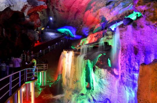 洞內(nèi)常年恒溫18度冬暖夏涼。洞內(nèi)景點(diǎn)多達(dá)一百余個,如:天堂大廳、童子拜觀音、千丘梯田、倒柳垂楊、許愿池、回龍廳等。最為壯觀的是洞內(nèi)的洞天飛瀑,它高九米寬七米,天然瀑布水從九米高的上空直奔洞池,濺起無數(shù)水花,聲勢浩大聲撼震天,為此洞一絕。清風(fēng)、怪石、流泉、飛瀑被稱為“洞中四絕”。