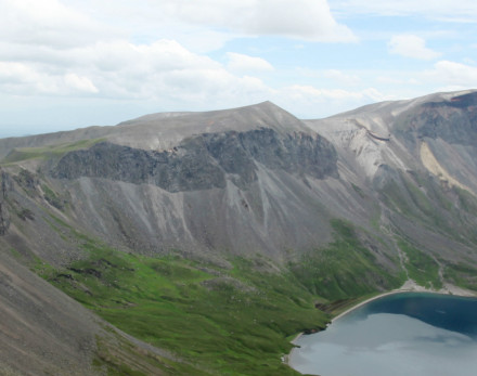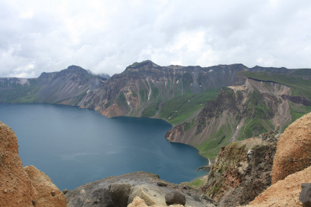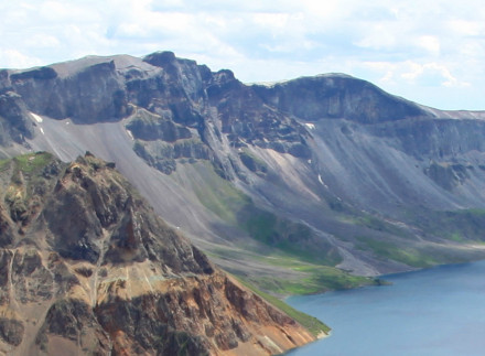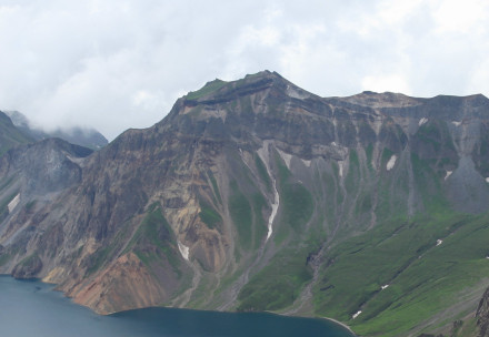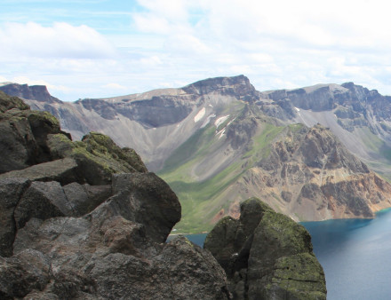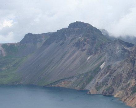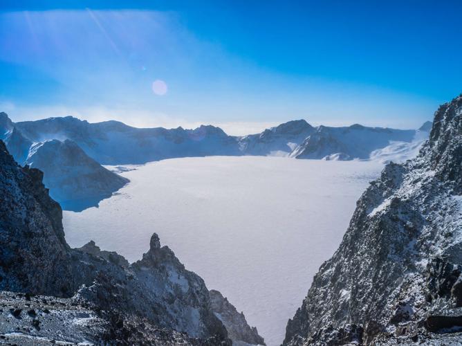 天池周圍火山口壁陡峭,并形成十幾座環(huán)狀山山峰,海拔均在2500米以上,其中將軍峰最高,海拔2749米,位于朝鮮一側(cè)。白云峰海拔2691米,在天池西側(cè),為中國(guó)東北的第一高峰。天池東北有天豁、鐵壁、華蓋、紫霞諸峰,天池西南有梯云、臥虎、冠冕(玉雪)諸峰,天池西北有龍門、觀日、錦屏、芝盤、玉柱(青石)諸峰。因駐有氣象站而得名的天文峰(2670米),介于鐵壁、華蓋兩峰之間,山峰不顯,有公路直抵山顛,可俯瞰天池。
