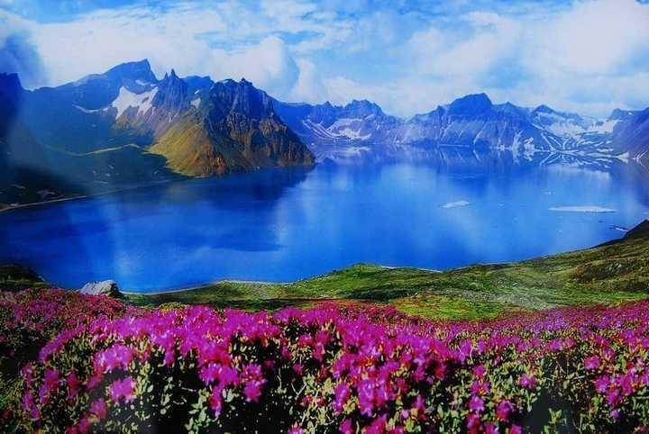 天池湖的水深幽清澈,群峰環(huán)抱的池面五彩斑斕,蔚為壯觀。游覽天池的黃金季節(jié)在盛夏。天池邊上倒映出16座山峰的影子和頭頂上的藍(lán)天,山水相連,水天一色。天池的特別之處和神奇之處在于,它只有出水而沒(méi)有入水,卻千年不絕地流淌著。古人說(shuō)它的水來(lái)自海上,故又稱“海眼”。
