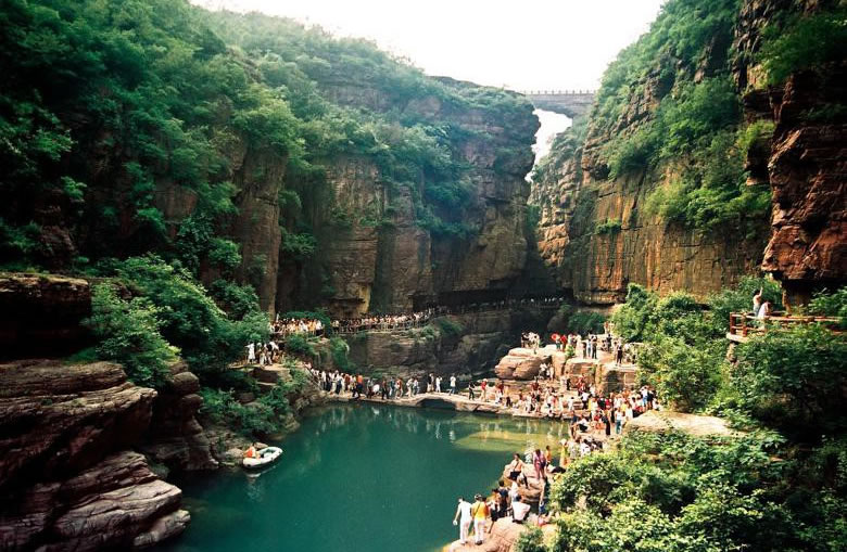 龍?zhí)洞髰{谷景區(qū),位于河南省洛陽市新安縣北部的石井鎮(zhèn) ,是一條紫紅色石英砂巖經(jīng)流水追蹤下切形成的U型峽谷。洛陽市龍?zhí)洞髰{谷全長12千米,景區(qū)是集生態(tài)峽谷旅游、休閑度假旅游、現(xiàn)代農(nóng)業(yè)旅游于一體的綜合性生態(tài)旅游景區(qū)。洛陽市龍?zhí)洞髰{谷深度達(dá)到300—500米,最窄處僅1—3米。大峽谷各段形態(tài)不同,有隘谷、嶂谷、峽谷、寬谷等類型。 景區(qū)主要形成于12億年前的地殼運(yùn)動時期,由于紫紅色石英砂巖經(jīng)上隆下降、崩裂塌陷和長期的水沖、風(fēng)剝等作用,形成了此地紅巖嶂谷群地貌。景區(qū)海拔高度在700—1000米之間,地勢西北高東南低。主要景點(diǎn)有黛眉山地質(zhì)博物館、五龍?zhí)丁Y谷、水往高處流、黑水潭等。景區(qū)由外向內(nèi)、自東向西可分為田園生態(tài)游覽區(qū)、現(xiàn)代休閑度假區(qū)、游客服務(wù)功能區(qū)和核心生態(tài)旅游區(qū)。